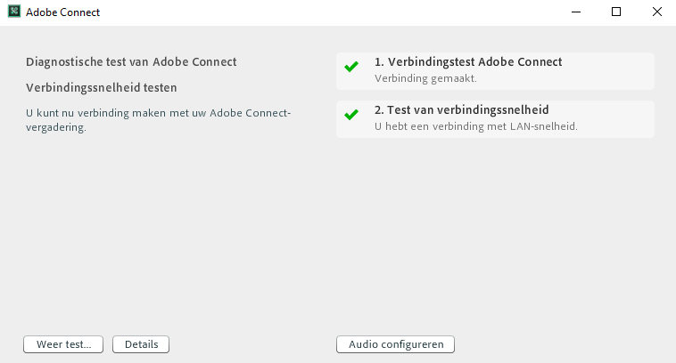 - Gehost: https://[uw_accountnaam].adobeconnect.com/common/help/en/support/meeting_test.htm