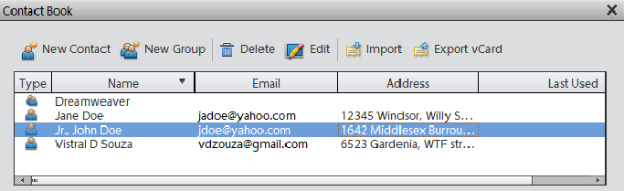 Met de lijst met contactpersonen kunt u een lijst bijhouden van veelgebruikte e-mailadressen. Door uw lijst met contactpersonen te configureren in de Elements Organizer kunt u snel foto's naar een persoon of een groep personen sturen.