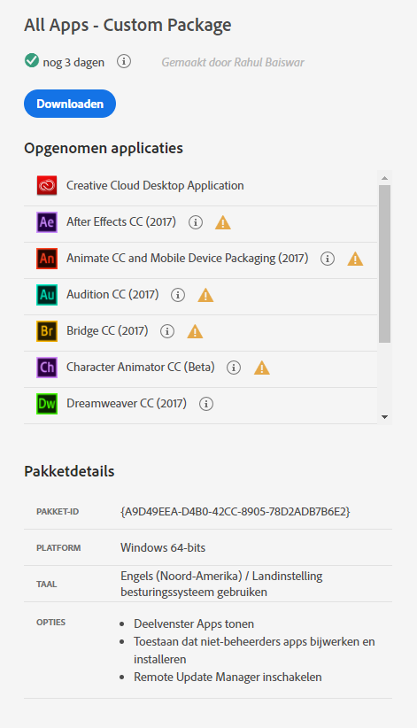 Als Adobe upgrades uitbrengt voor applicaties die zijn opgenomen in het pakket, is het pakket niet meer up-to-date.