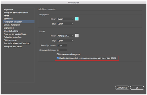 Aanvulling: Het pixelraster weergeven