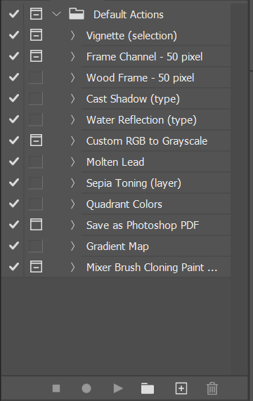 Ga naar Venster > Handelingen en selecteer Klassieke handelingen om afzonderlijke handelingen op te nemen, af te spelen, te bewerken of te verwijderen. U kunt uw eigen handelingbestanden opnemen door het pictogram Nieuwe handeling maken te selecteren.