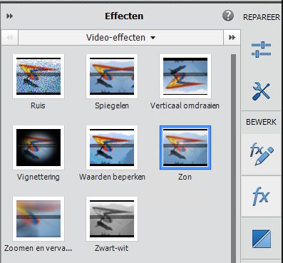 Sleep in het deelvenster Effecten een effect (bijvoorbeeld het effect Zon) naar de clip om het effect toe te passen.