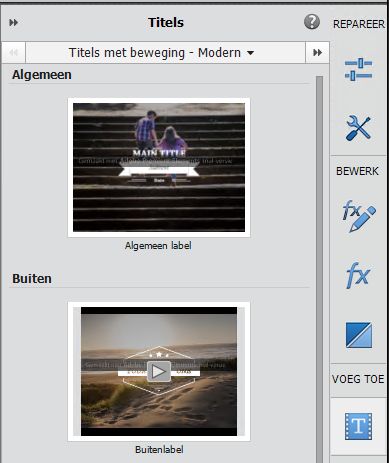 Selecteer in het deelvenster Titels en tekst een categorie naar keuze uit Bewegingtitels, kies een thema en vervolgens een sjabloon.