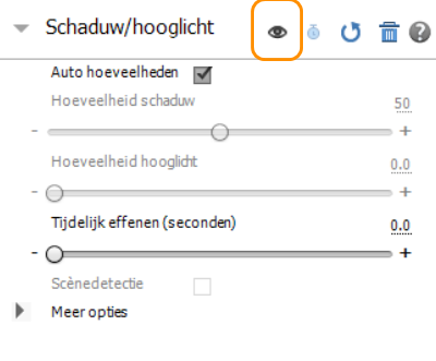 Schakel het oogpictogram in of uit om te kijken hoe uw video er voor en na de wijziging uitziet.