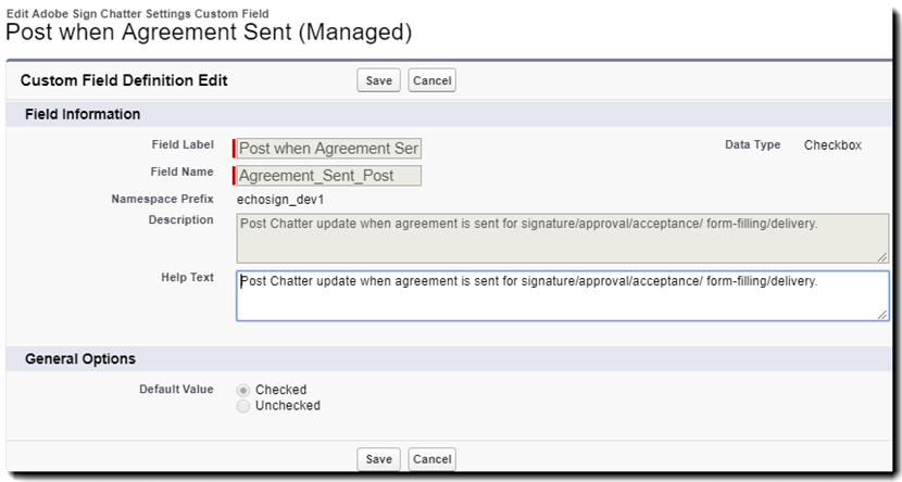 Ondersteuning voor Adobe Acrobat Sign voor Salesforce v19.x en v20.x is verlopen per oktober 2021.