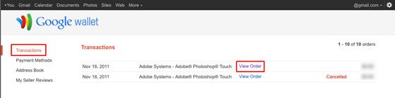 Neem contact met ons op via Google Wallet als u vragen hebt voor Adobe over de aankoop van uw app. Meld u aan bij Google Wallet en ga naar de transactiegeschiedenis. Bekijk de bestelgegevens voor de transactie en klik op de koppeling om contact op te nemen met Adobe.