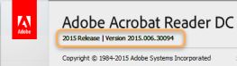 - Acrobat Reader: Velg Acrobat Reader > Om Adobe Acrobat Reader. Popup-vinduet viser produktnavnet, tilknyttet versjonsstreng og melding om opphavsrett.