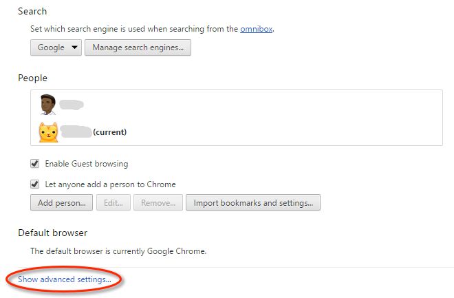 Rull ned til bunnen av siden, og klikk på Vis avanserte innstillinger.