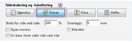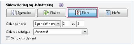 Menyen Sideskalering i dialogboksen Skriv ut viser flere alternativer, men du kan ikke forhåndsutfylle dialogboksen med disse alternativene. Velg ett av alternativene når du skriver ut.