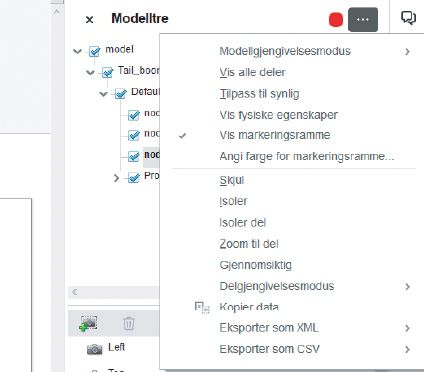 Velg Alternativer-menyen øverst til høyre i Modelltre-fanen.