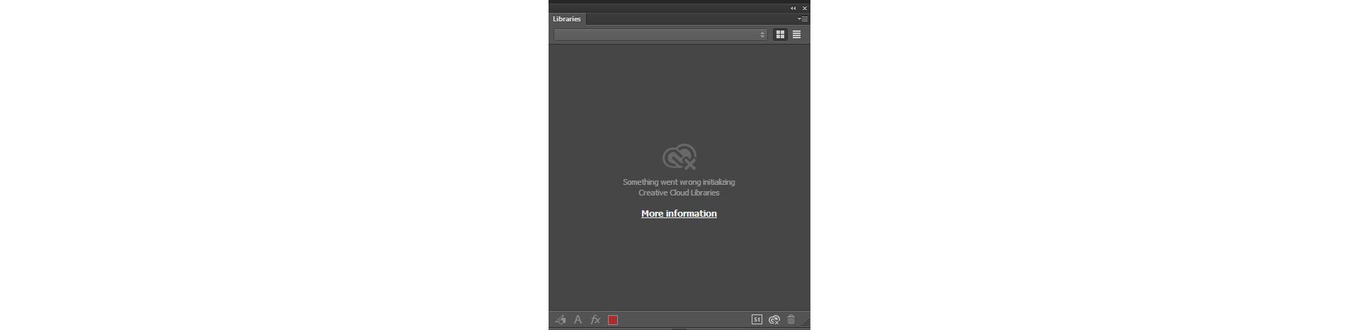 Når du forsøker å bruke Creative Cloud Libraries i støttede skrivebordsprogrammer, lastes ikke panelet, og følgende feil blir vist: