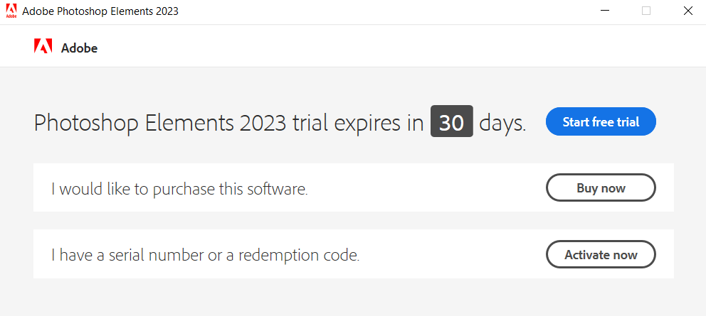 Du kan se på skjermen hvor mange dager som gjenstår av den gratis prøveperioden på Photoshop Elements 2026. Du kan se på skjermen hvor mange dager som gjenstår av den gratis prøveperioden på Photoshop Elements 2026. -