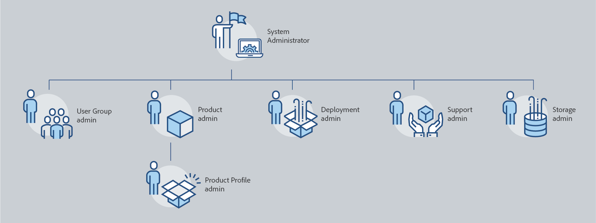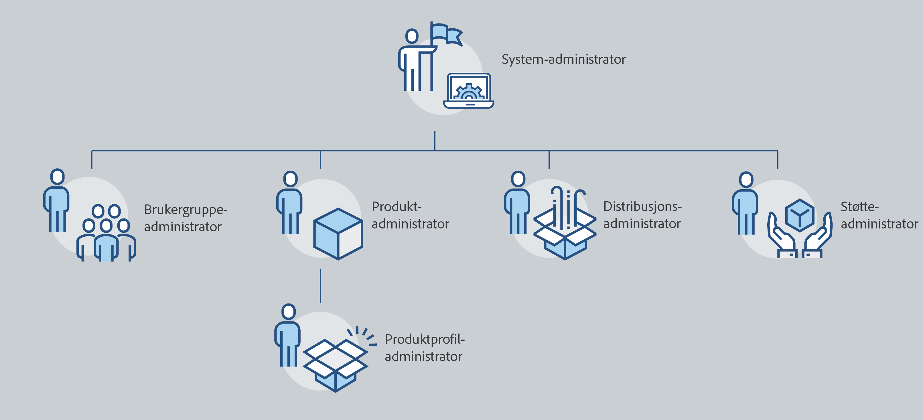 Bruk Adobe Admin Console til å konfigurere en fleksibel administratorstruktur for administrasjon av brukere og lisenser. Systemadministratorer har det høyeste tilgangsnivået og kan tilordne andre administratorroller.