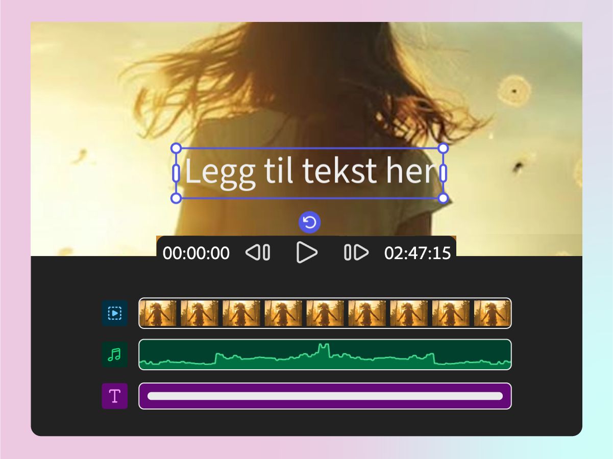 Bruk videoredigeringsverktøyet direkte i nettleseren din uten å måtte laste ned eller installere noen app.