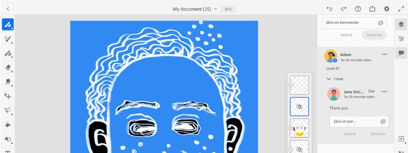 Du kan nå samarbeide sømløst ved å invitere én bruker om gangen til å redigere kunstverket ditt i nettskyen.