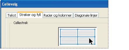 Du kan bestemme hvilke cellelinjer som skal formateres med en strek eller fyll ved å velge eller oppheve valget av linjer i forhåndsvisningen. Hvis du vil endre utseendet på alle radene eller kolonnene i tabellen, bruker du et vekslende strek- eller fyllmønster der det andre mønsteret er satt til 0.