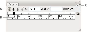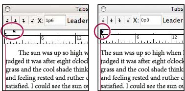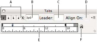 på tabulatorlinjalen i Tabulator-panelet (Tabs-panelet).