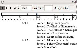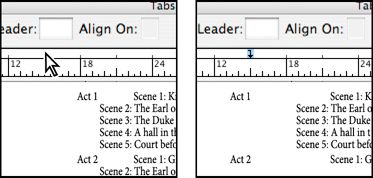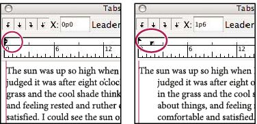 Marker en tabulator på linjalen i Tabulator-panelet (Tabs-panelet).