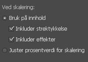 Generelt > Bruk på innhold > Inkluder effekter. Deaktiver dette valget hvis du bare vil skalere objektene og ikke effektene.