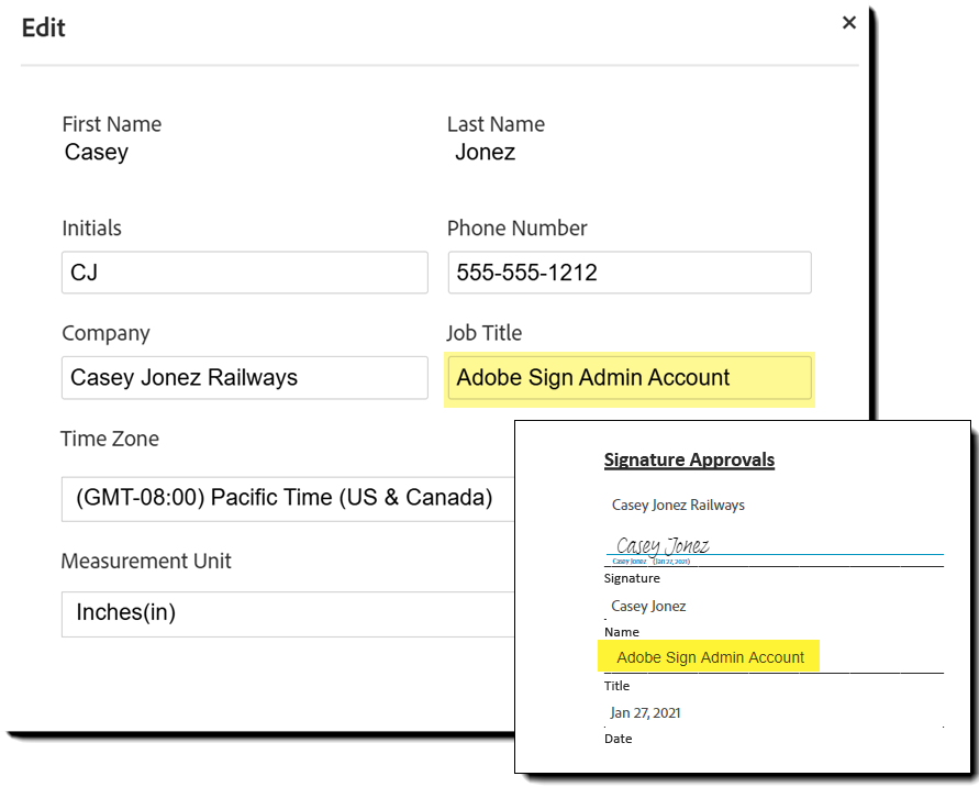 Du kan oppdatere en brukers detaljer i Acrobat Sign, men disse endringene gjelder bare Acrobat Sign-tjenesten. Oppdateringer som gjøres her synkroniseres ikke med Admin Console og vil ikke påvirke brukerens tilgang til andre Adobe-produkter eller -tjenester.