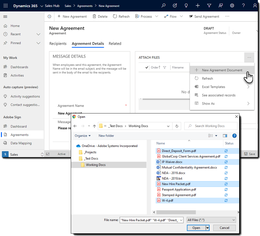 Adobe Sign for Dynamics 365 v8-pakken utvider funksjonaliteten til Sales Hub for kunder som har distribuert på Dynamics 365 9.x.