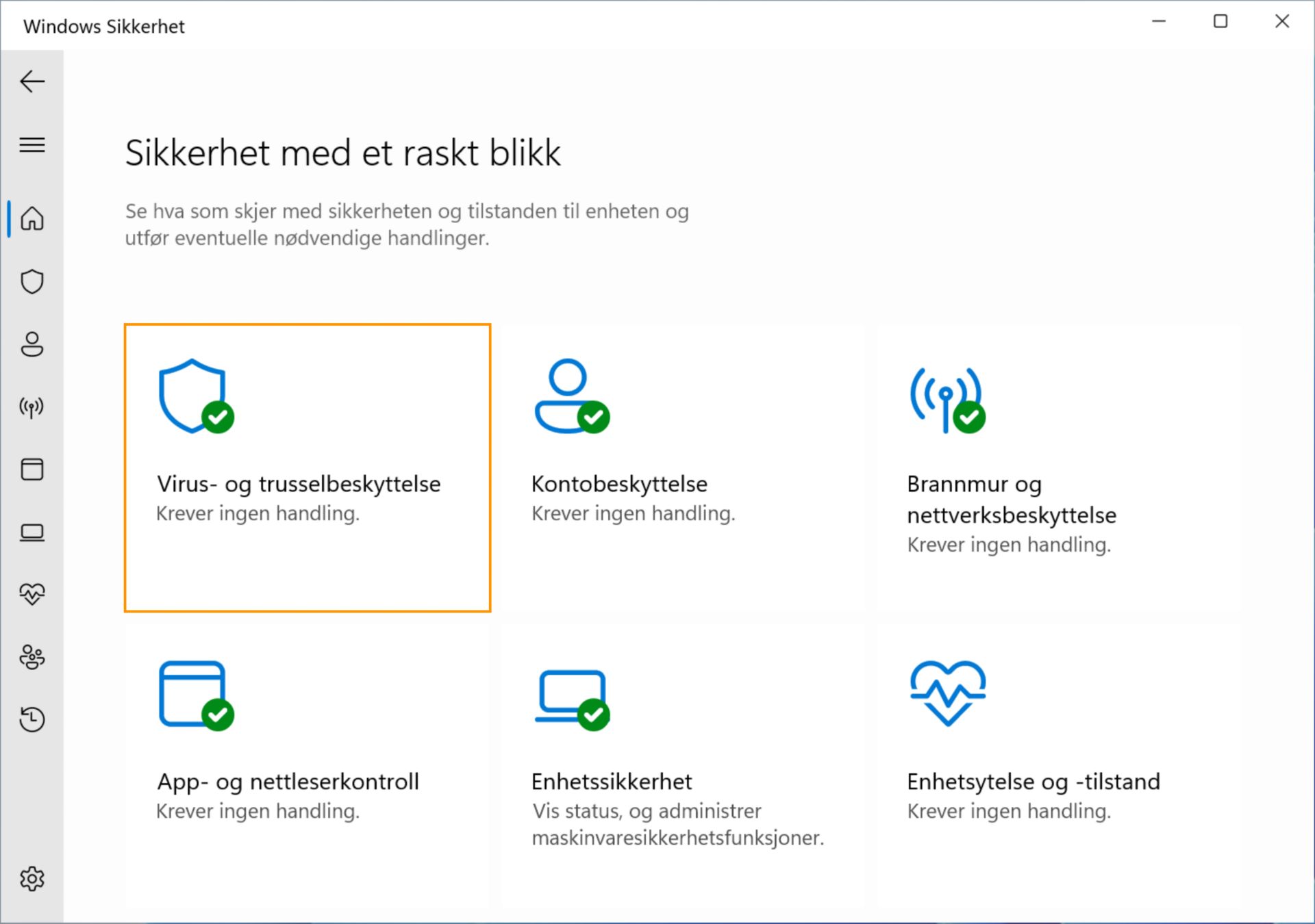 Du kan også velge Start > Innstillinger > Oppdater & Sikkerhets > Virus- og trusselbeskyttelse.