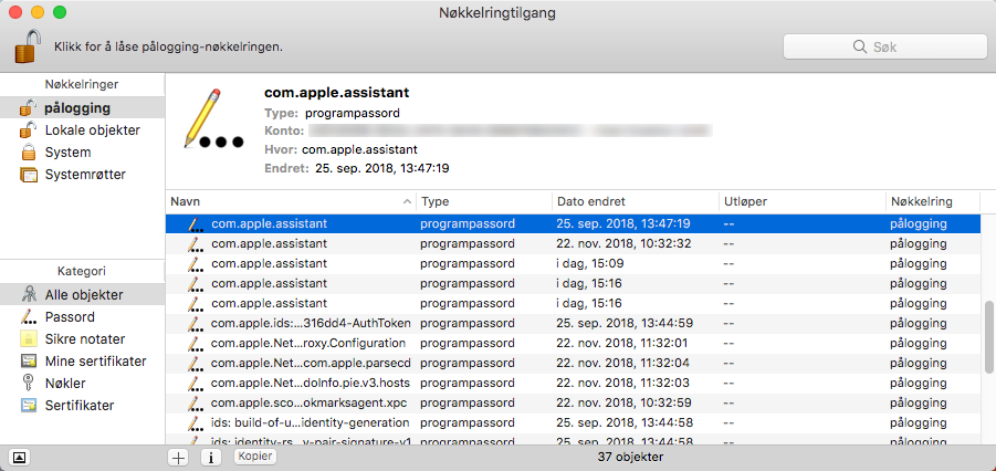 Gå til Programmer > Verktøy > Nøkkelringtilgang.