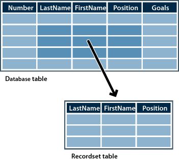 Esta instrucción crea un juego de registros de tres columnas y lo completa con filas que contienen el apellido, el nombre y los puntos de forma física de todos los empleados de la base de datos. Para más información, consulte www.adobe.com/go/learn_dw_sqlprimer_es.