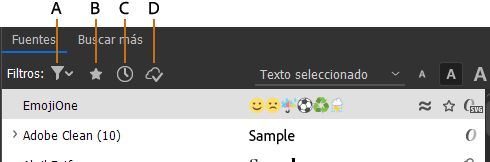 A. Mostrar fuentes según la clasificación B. Mostrar fuentes favoritas C. Mostrar elementos añadidos recientemente D. Mostrar fuentes activadas