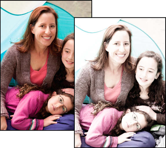 (Optional) If you have a central subject or would like to highlight an aspect of your photo, you can apply a diffused glow. Click the Diffuse Glow button to apply a minimal amount of glow to the photo. To change the diffused glow effect to specific portions of the photo: