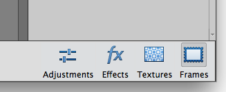 These panels are placed next to the Adjustments panel. Each panel has ten thumbnails. Each thumbnail is a live preview. Clicking a thumbnail applies the effect, texture, or frame, to your image. Names for these effects, textures, and frames is displayed when you hover the mouse pointer on the thumbnail.