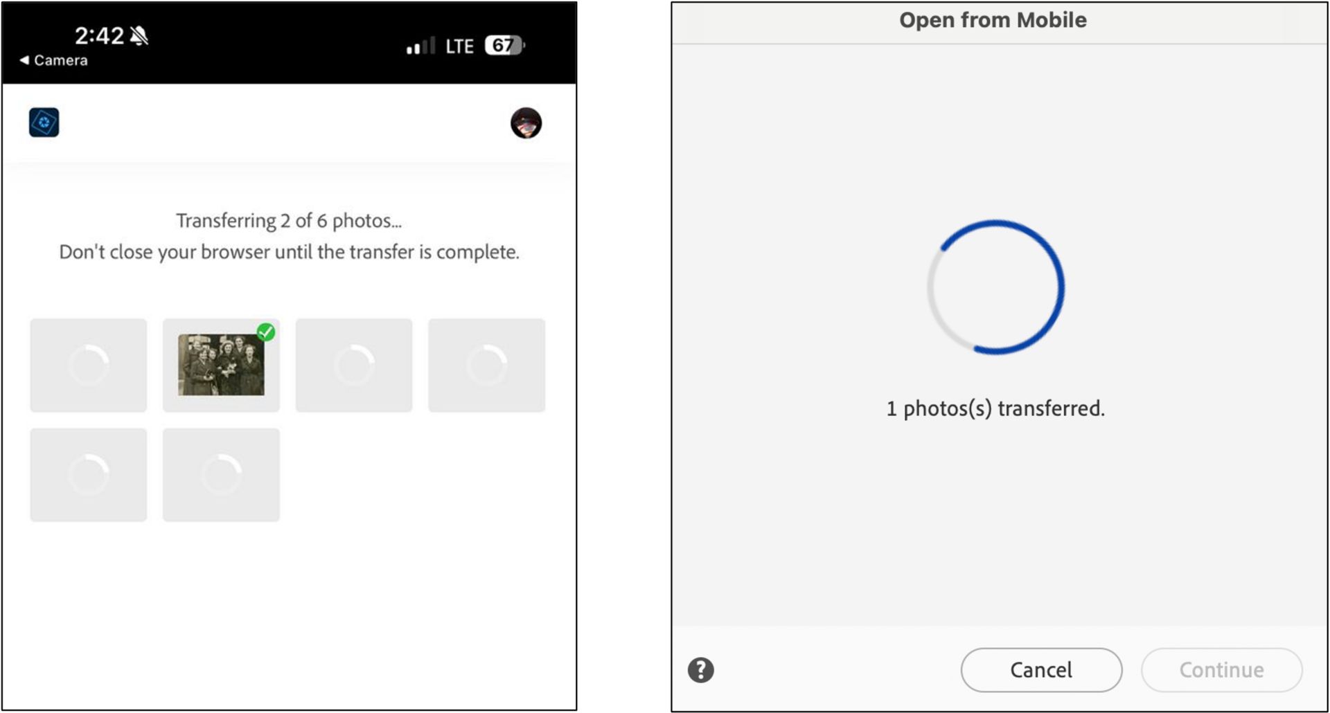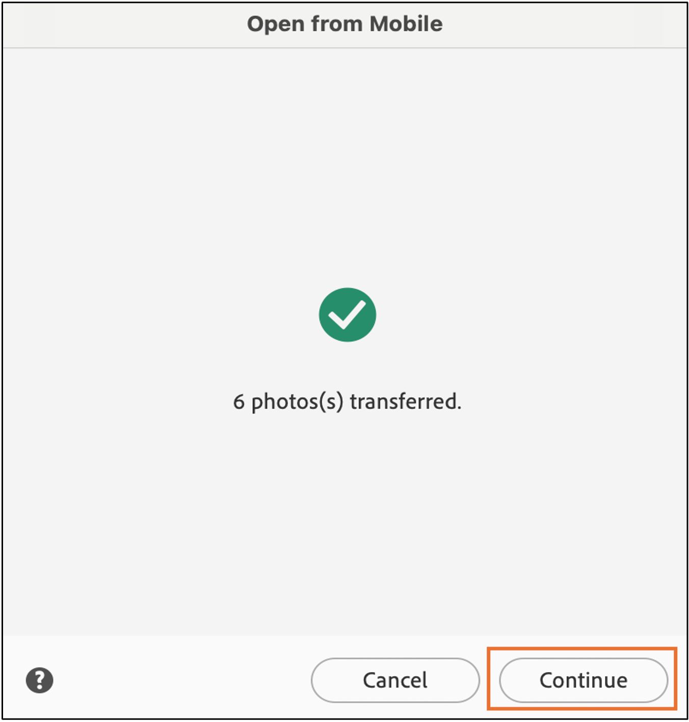8. After the transfer is complete, select Continue to open the transferred photos in the Editor.