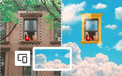Easily replace a background with an image from your phone, create AI-generated backgrounds with Generative fill, or select from a large library of Adobe Stock images, including textures and patterns.