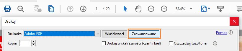 W oknie dialogowym Drukuj wybierz Zaawansowane.