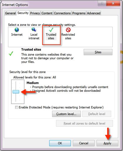 Używając suwaka, zmień poziom zabezpieczeń na średni, kliknij Zastosuj, a następnie kliknij OK.