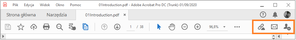 Otwórz plik PDF i wybierz Udostępnij na pasku globalnym.