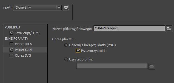 Eksportowanie i publikowanie zawartości z programu Animate w formacie OAM