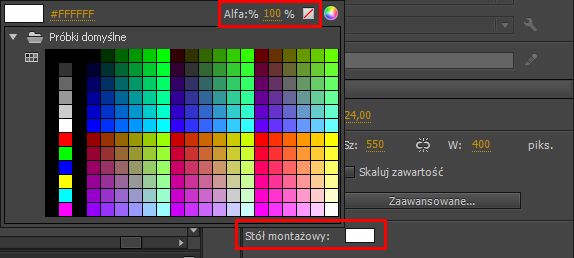 W panelu Właściwości wybierz opcję Kolor stołu i ustaw w polu Procent kanału alfa na 0.