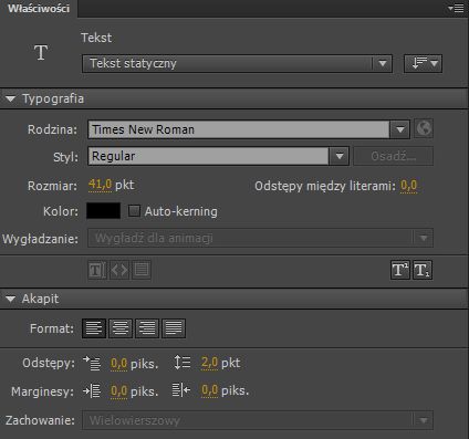 Uwaga: Czcionki Adobe Fonts nie są dostępne w przypadku tekstu statycznego.