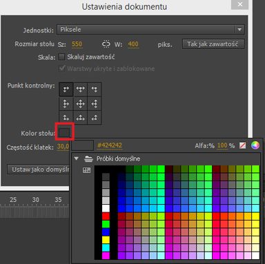 - Wybierz opcję Modyfikuj > Dokument > Kolor stołu lub w inspektorze Właściwości wybierz opcję Ustawienia zaawansowane.