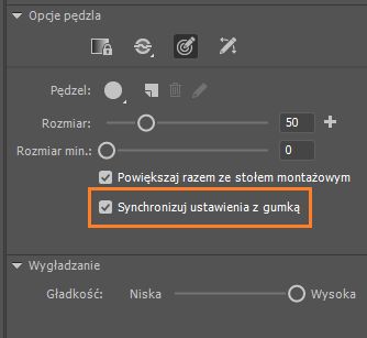 Synchronizowanie ustawień w narzędziach Pędzel i Gumka