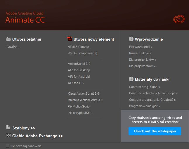 - Upewnij się, że jest zainstalowany program Animate CC 2014.1 lub nowszy.