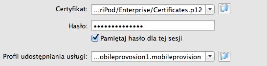 - Na zakładce Wdrożenie podaj certyfikat i hasło. Opcjonalnie podaj profil informacyjny aplikacji AIR.