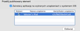 - Na zakładce Wdrożenie wybierz opcję Zainstaluj aplikację na podłączonym urządzeniu z systemem iOS.