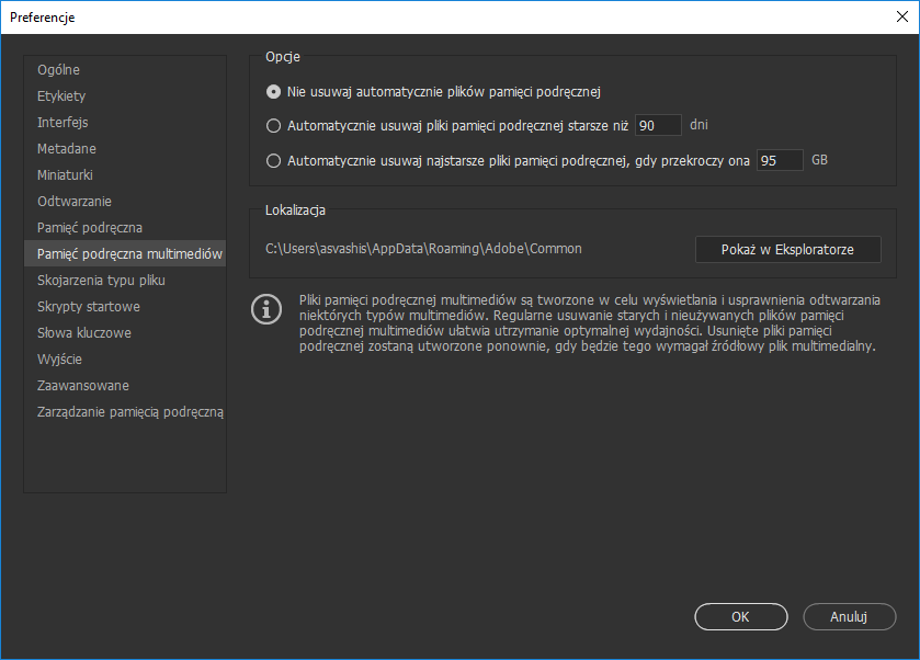 - Praca z pamięcią podręczną w programie Adobe Bridge