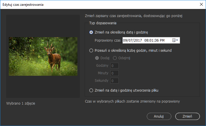 - Podgląd obrazów i edycja czasu zarejestrowania
