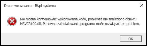 - Aplikacja Dreamweaver nie uruchamia się.