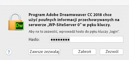 [macos 26 Tahoe tylko] Dreamweaver może nie uzyskać dostępu do niektórych plików lub folder, chyba że opcja Pełny dostęp do dysku jest włączona w Preferencjach systemowych w sekcji Bezpieczeństwo i prywatność.