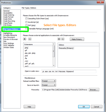 W prawym okienku wybierz opcję Typy plików/Edytory.
