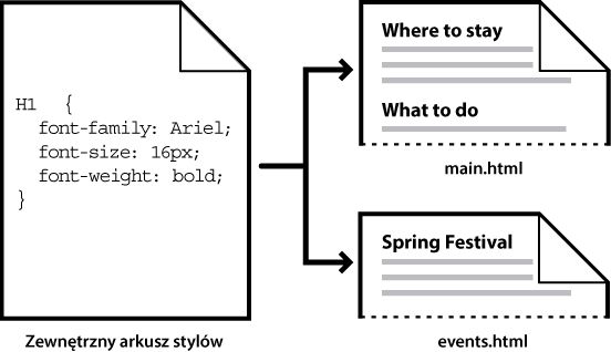 Domyślnie program Dreamweaver formatuje tekst za pomocą stylów CSS (Cascading Style Sheet). Style nadawane tekstowi za pomocą Inspektora właściwości albo poleceń menu generują reguły CSS, osadzane w nagłówku bieżącego dokumentu.
